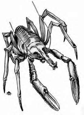Pokračovali dále a došli na větší průrvu na křížení čtyř chodeb. Strop se zde zvedal vysoko do temné spáry, a když bojovník vstoupil do otevřeného prostoru, najednou po něm vyšlehlo jakýsi slizký provaz, který se mu přilepil na štít a začal jej táhnout vzhůru. Zkusil jej useknout mečem, avšak ten se přilepil zrovna tak. Jeho společníci přiskočili a snažili se jej udržet na zemi, avšak cokoli na druhé straně táhlo svou kořist vzhůru mělo ohromnou sílu, a obití o nerovné stěny jeskyně nakonec popadali dolů, zatímco bojovník se už blížil ke skryté římse a spatřil na ní číhat dvě ohromná klepeta.