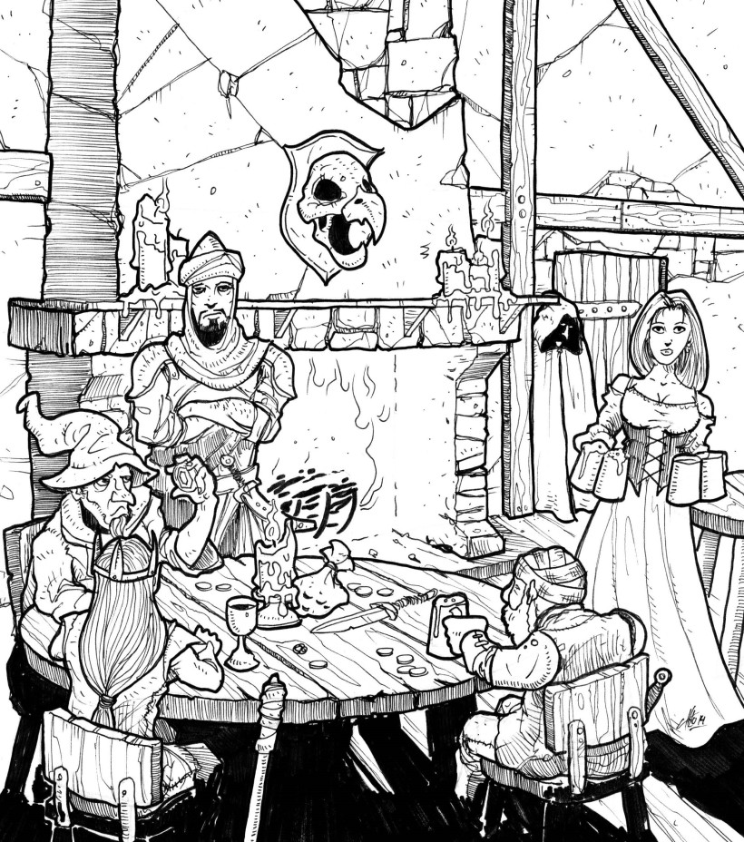 Bojovník utratil spoustu peněz za patoky, které se skoro nedaly pít, a způsobily mu akorát příšerný bolehlav (ukrutný tuzemák – tedy pokus pálit lokální úrodu, která sestává primárně ze zakrslých tuřínů – je nechvalně proslulý), kouzelník zjistil, že si jeho společnice dovolila vzít po tom so usnul proaktivně dýško sama, a jeptiška utratila na charitu, pod vlivem přemlouvavého otce Ottara, dvakrát víc, než plánovala, a nezbylo jí tedy už na léčitele, byť z toho aspoň měla opravdu dobrý pocit a na další výpravu tak mohla vyrazit s klidným přesvědčení, že přesně takhle to Sv. Ygg chce. Jediný lupič dokázal v kostkách podváděním obrat víc lidí, než obralo jej, což oslavil tím, že si od elfa, který se občas ve vsi objeví, koupil nefalšovaný elfí luk a několik elfích šípů. Sice neumí střílet, ale o elfích lucích se říká, že střílí skoro samy.