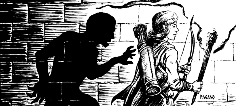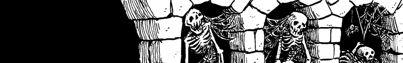 Bojovník se zatajeným dechem poslouchal, jak se kostěné kroky blíží – už slyšel, že je jich několik, snad pět – a když byly už už skoro na dosah sekery, ucítil ostrou bolest ve svém rameni, na které dopadla jakási zbraň. Zachránilo ho jen jeho brnění. Vykřikl, zaklel, zloděj rychle odhalil lucernu, a když se jejich oči přizpůsobili světlu, zjistili, že proti nim tiše stojí šest kostlivců s halapartnami. Kostlivce, oproti dobrodruhům, světlo nikterak nevzrušovalo, a dál tiše a mechanicky útočili se své bezpečné vzdálenosti na bojovníka. Kouzelník na nic nečekal a seslal připravený magický mráz – chodba se pokryla jinovatkou a lesklou ledovkou, kostlivci sami se sice tvářili pořád stejně, avšak při pohybu na nich nyní praskala zamrzlá vlhkost, a hlavně – bojovníkova sekera, kterou se snažil prosekat se přes halapartny, pár ranami polámala a rozbila zmrzlá ratiště. Souboj pak již byl celkem jednostranný – kostlivci sice měli přesilu, ale tupě pokračovali v útoky polámanými halapartnami, jako by si ani plně neuvědomovali, že už nejsou celé, a místo vážných ran tak uštědřili jen pár modřin.