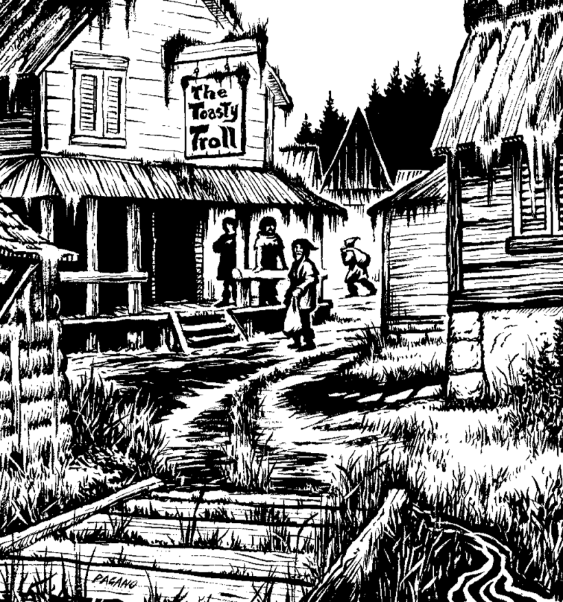 (Přiznávám se zde k obavě, zda jsem zde nejsem až příliš štědrý – jsem obecně spíš z těch gamemasterů, které trápit hráče samo o sobě nebaví, ale zase bych nerad čelil obvinění z obávané “monty haul” kampaně. Přepočítávám šperky v modulu desetinásobným koeficientem, protože jednak mám oproti pravidlům Labyrinth Lordu dražší ceník (používám tento z blogu Bat in the Attic, který je postavený na historických cenících – a ceny jsem ještě o něco zvedl vzhledem k tomu, že Ukrutná Lhota je doslova konec civilizace), druhak jsou nacenění pokladu v původním textu směšně nízké, zlatý prsten podle mě opravdu nemá stát co krátký luk – ale získávám podezření, že v nějaký moment si to uvědomil i autor textu a sám tam takový koeficient započítal.