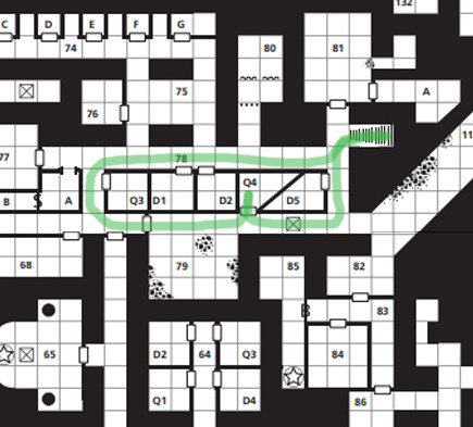 Vydali se tedy po schodech dolů, a záhy zjistili, že sestoupili po schodišti, které minule zkoumali z druhé strany (78) – kousek vedle krypty, ve které porazili bohatou mumii, a rozhodli se, že teda ještě vyzkouší, zda lupičem zakoupený klíč nebude pasovat do krypty se dvěma zámky, kterou minule nedokázali otevřít (78.2). A skutečně, klíč zapadnul, a lupič po chvíli trápení (v mezičase někdo ve druhém zámku zlomil několik paklíčů) dveře odemknul. Otevřela se před nimi hrobka, která byla vybavená jako hotova alchymistická laboratoř. Spousta křivulí, kahanů, destilačních kolon, flakónů a ampulí. Než si ji ale stihli pořádně prohlédnout, zjistili, že se ze směru, kterým sami přišli, blíží světlo, kroky a tiché hlasy.