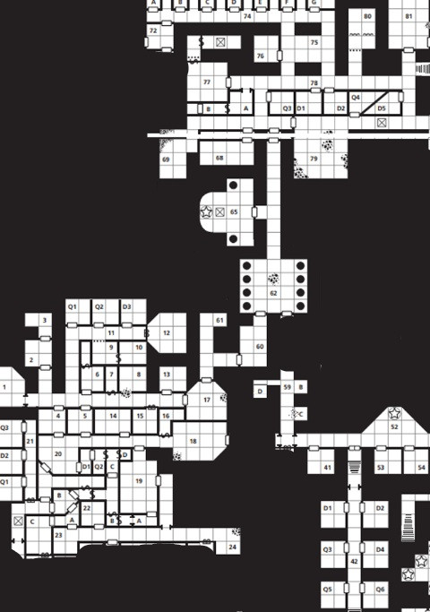 Prvně se rozhodli vyrazit odbočkou kousek od velké komnaty s pobořenými sloupy (62) – ta ale za rohem skončila slepým koncem s pohřebními výklenky, které už ale někdo vybrakoval (61). Zkusili tedy další ne zcela prozkoumanou odbočku (11). Kouzelník díky požehnání Zeleného muže vytušil, že stín v třetí kobce stále číhá, a cítil také další čtyři uzly temnoty v zazděné místnosti na konci chodby (12). Lupič zde už pár týdnů tomu nakoukl přes škvíru a viděl čtyři kostry válečníků. Řekli si ale, že když budou dostatečně rychlí, tak se třeba stihnou stínu opět vyhnout. Bohužel se ukázalo, že dveře jsou zamčené, a zrezlý zámek odolával lupiči tak dlouho, až mu jeho družiníci museli nervózně zaklepat na rameno a ukázat na konec chodby – kde se očividně začaly blížit temné, mrazivé stíny, a to celkem pět takových.